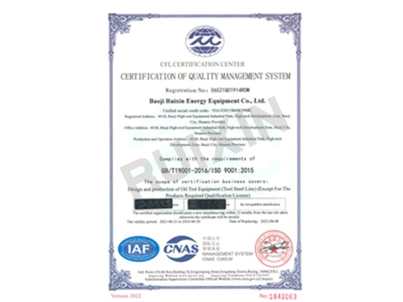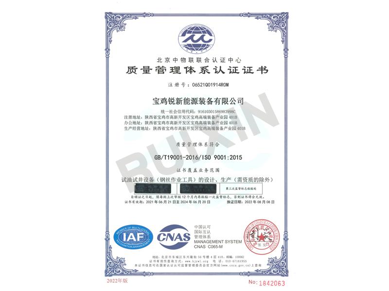 ISO 900质量体系证书