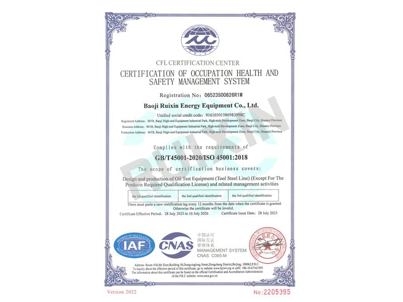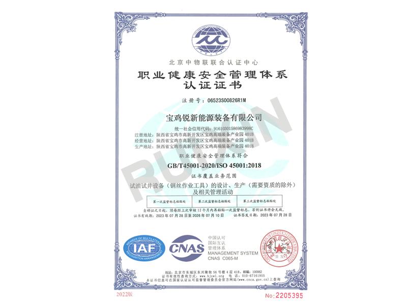 ISO 4500职业健康安全管理体系证书
